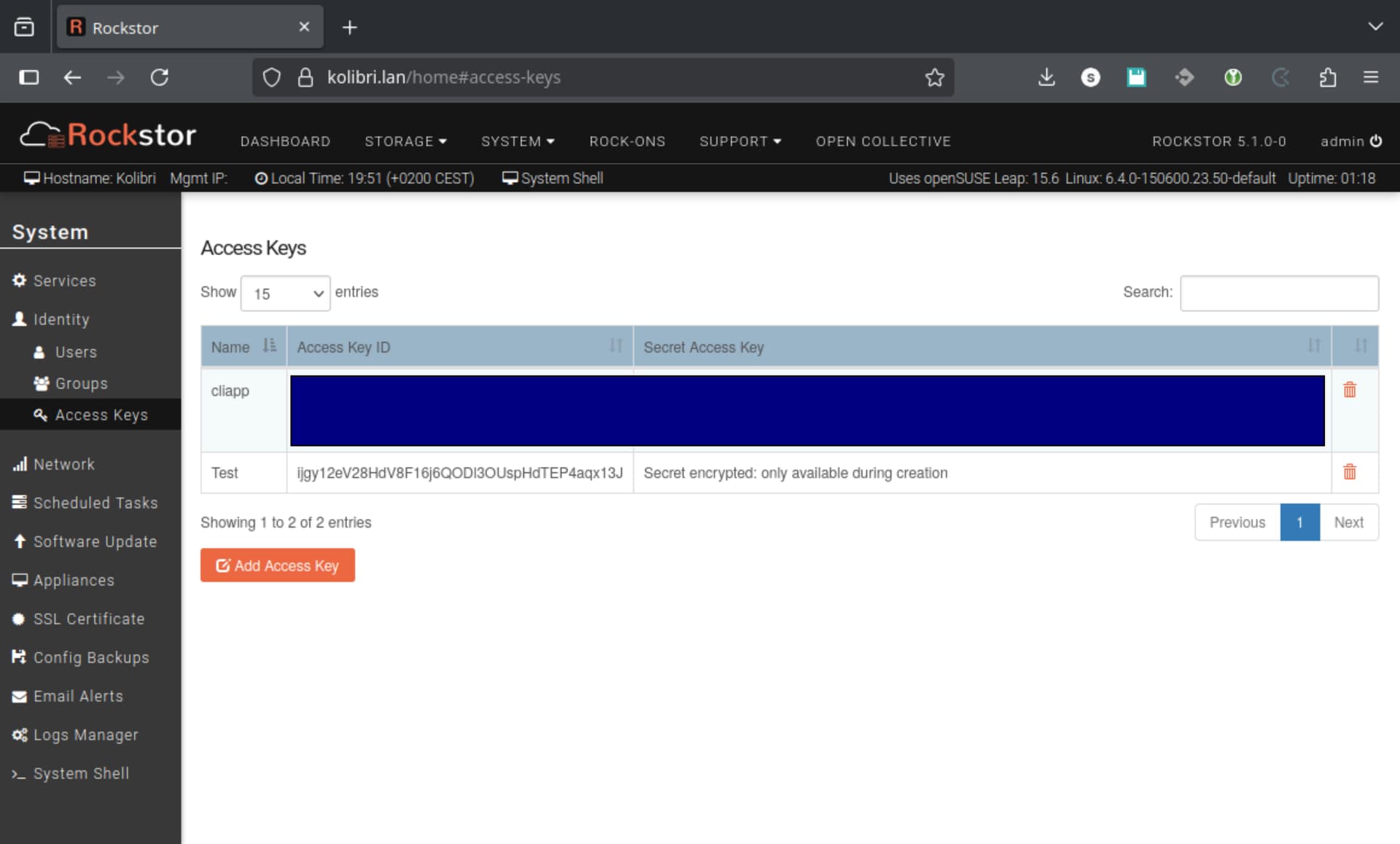 The “cliapp” access key does show the Secret Access Key in the list, but not custom created access keys.