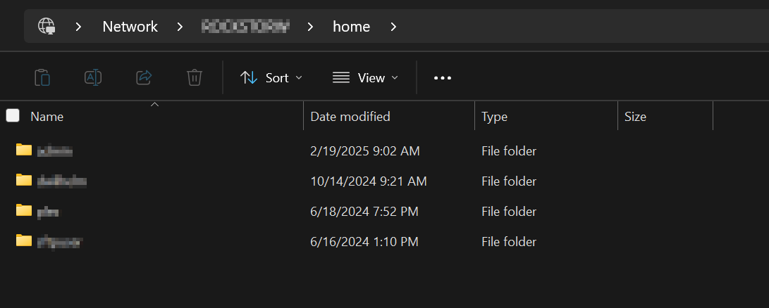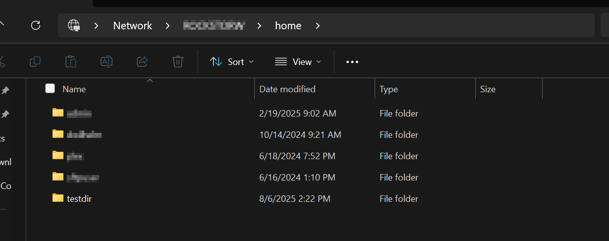 and restart the samba service (systemctl restart smb) then a refresh of the home samba export will now show only the folders that don’t have the access rights of 700 (I’m obviously not using root to access the samba share but some other user).