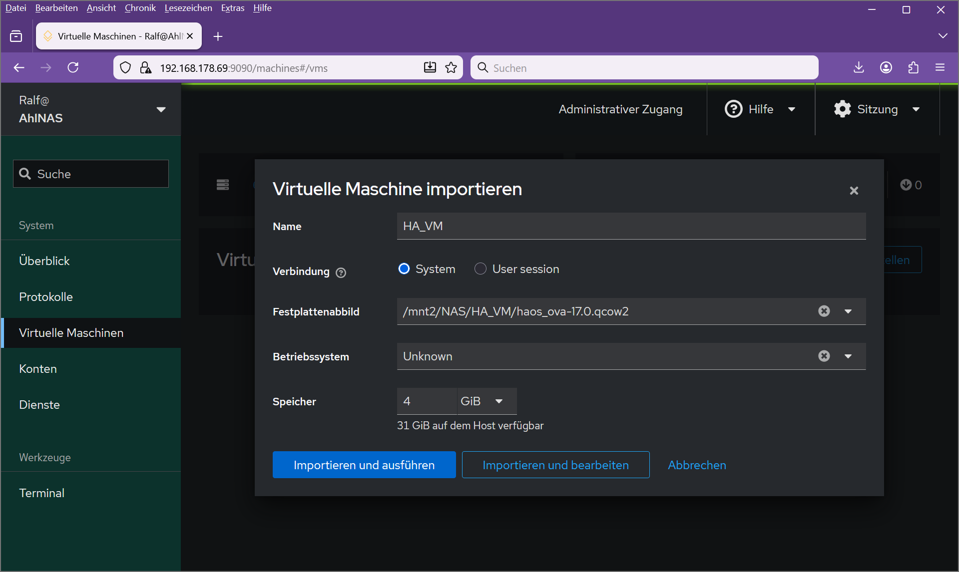 That’s it with the “hard” part, we now have (additionally to the Rockstor web-UI) the cockpit web-UI for managing all kind of OS related things, from Services to Virtual Machines and an extensive List of Cockpit-Applications to chose from.