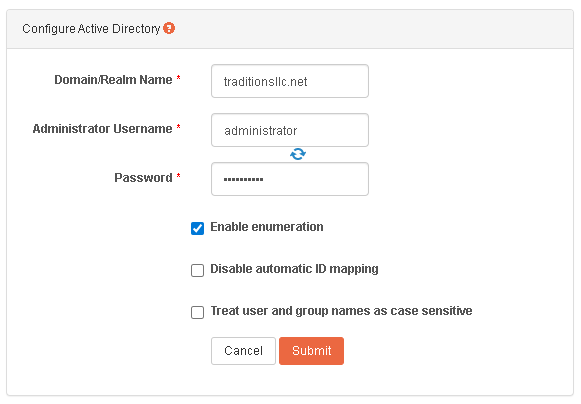 NAS2-1:/etc/sssd # id administrator@traditionsllc.net