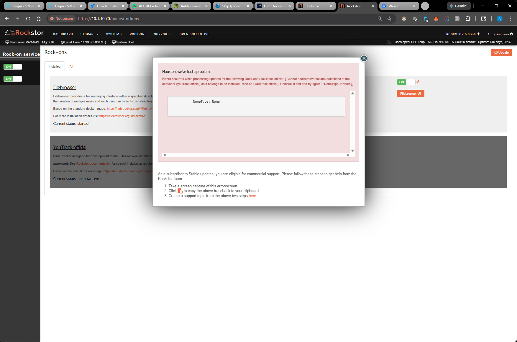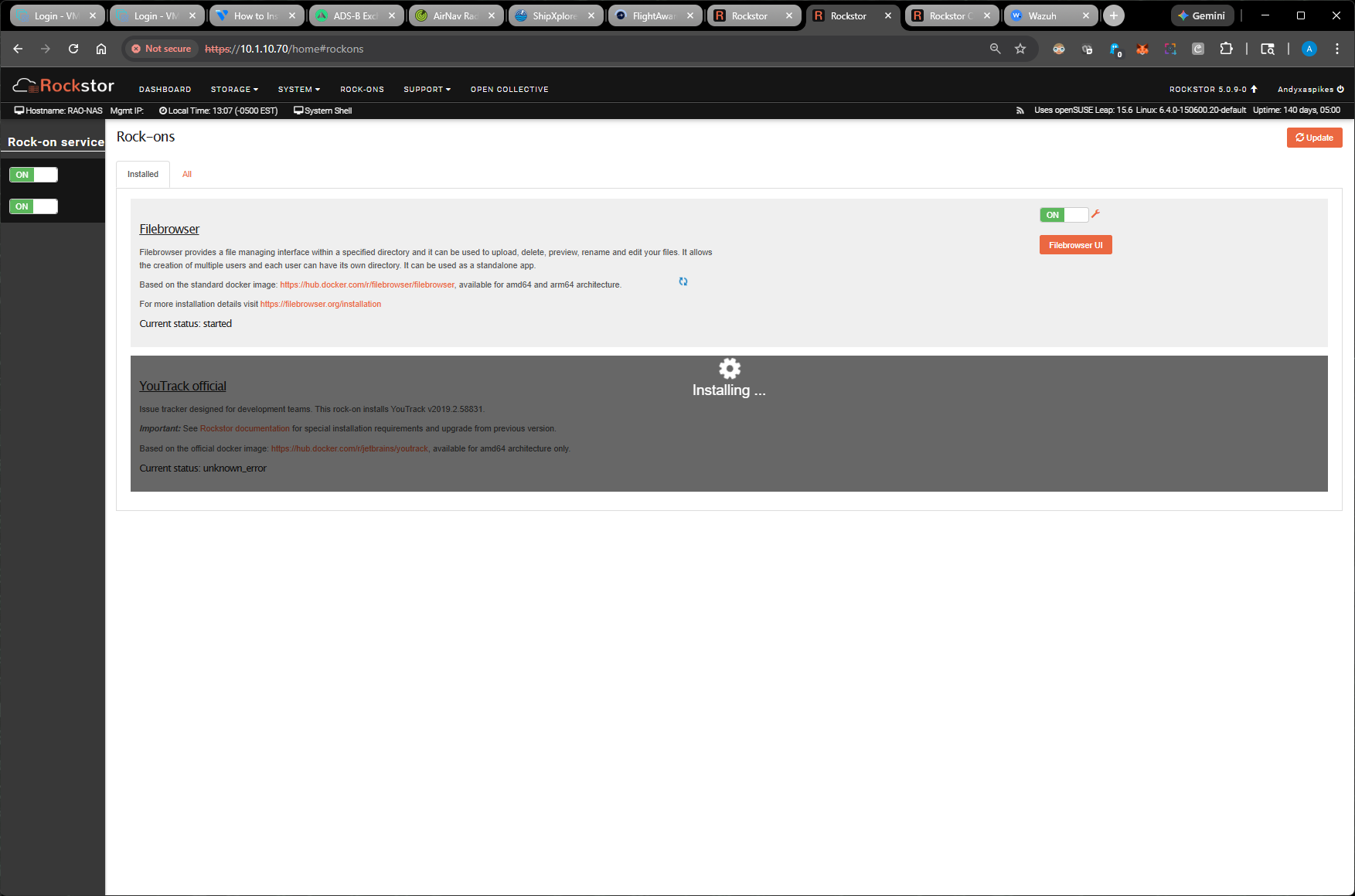 Once it comes back up you should be able to run the Rock-on Update and then redo the installation?